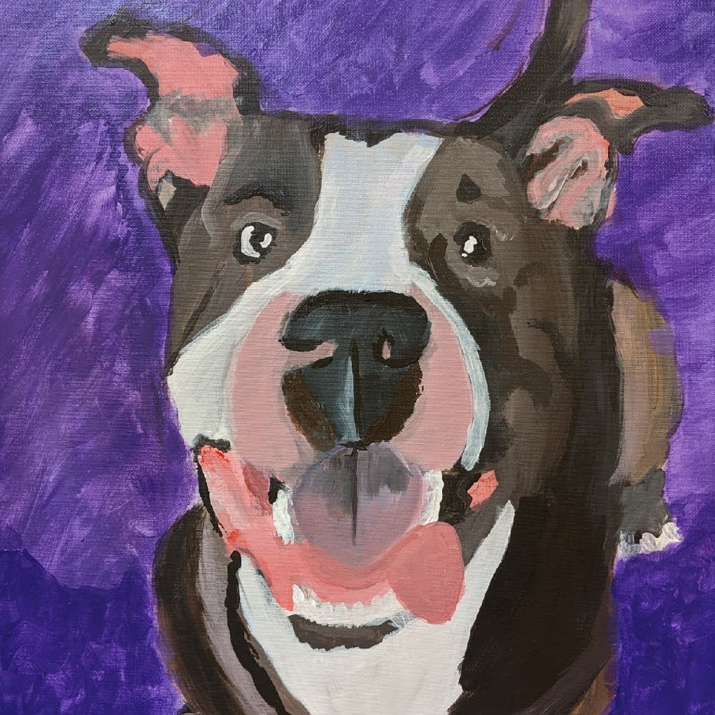 I am that basic dog mom that is all about her pup, or in my case, pups. Smiley and Pablo are both rescues from the Brooklyn ACC. They weren’t always living the best lives, but now they are because my husband and I are obsessed. Although we are both artsy, we cannot draw or paint at all. So we were very nervous to join the Paint Your Pet class at Create Color Art Studio.