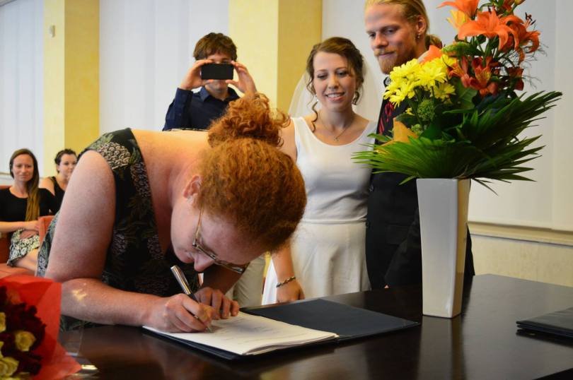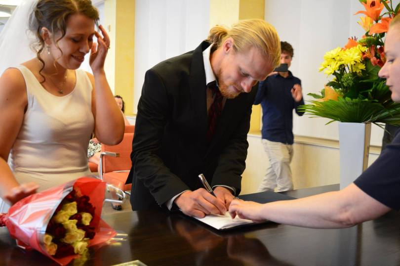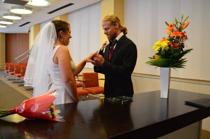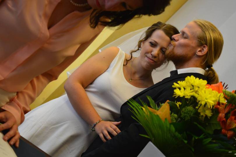 Anyway, fast forward three years of travel, living together, a mutual love for our snail pets, a running-sushi engagement and plans to move to China together… Our small wedding didn’t require much planning. But even a tiny, simple wedding can be stressful. I organized everything and left Isaac in charge of the cake.