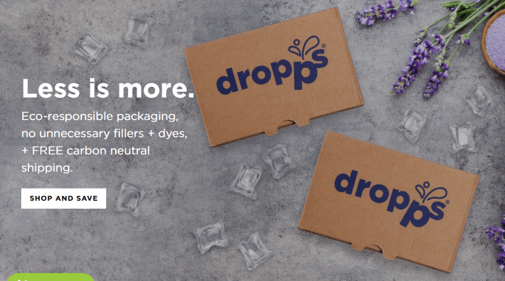 Dropps are different from other detergents because they are sent in recycled cardboard boxes and delivered straight to your door. Their ingredients are much more natural than those of other detergents. You can see more details about that here. They also source these ingredients in a green and ethical way.