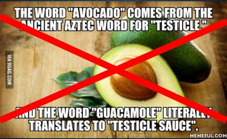 People go as far as claiming that guacamole means testicle juice. Snopes explains that, while avocado does mean testicle, guacamole doesn’t mean testicle juice. A blogger who writes about all things Nahualt goes deeper into this, so please check this out because I can’t stand to write “testicle” one more time.