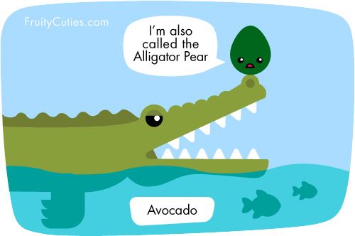 Avocados do have a pear shape, but alligator? I guess the peel looks a little bumpy like an alligator? Whatever the reason, it makes cute memes.