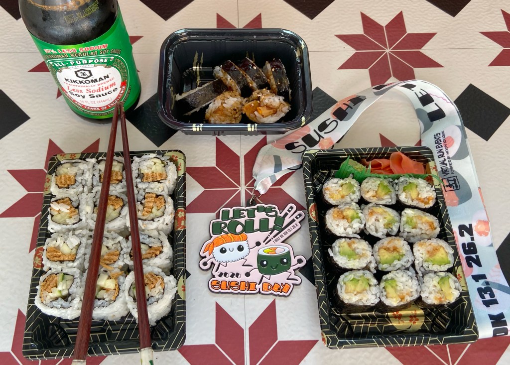 By the way, this all started with International Sushi Day which I discovered through my love of virtual races. You can join the virtual sushi roll race with Virtual Run Events here.