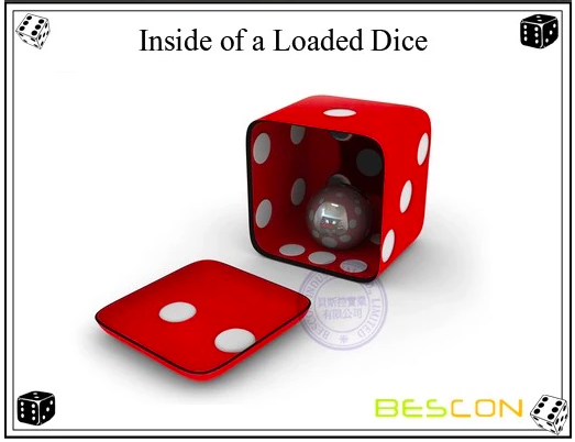 It’s funny that loaded dice even exist, since it is virtually impossible to create a perfectly even dice. Check out how a loaded dice looks on the inside – photo from Alibaba.