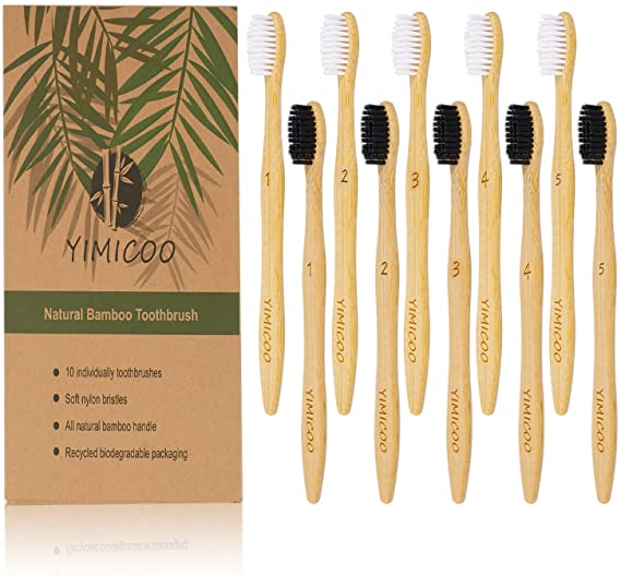 There are several greener ways to have whiter (and cleaner) teeth! The cheapest include bamboo, recycled-plastic, and plant-based plastic toothbrushes. My favorite ones have charcoal bristles because my teeth feel even cleaner when I use these. In the USA you can even buy these at the Dollar Store, sometimes even two or four for just $1. Although Amazon has pretty great prices too, and you can even subscribe to get them delivered regularly as needed.