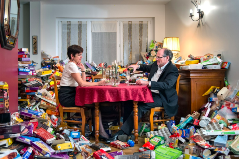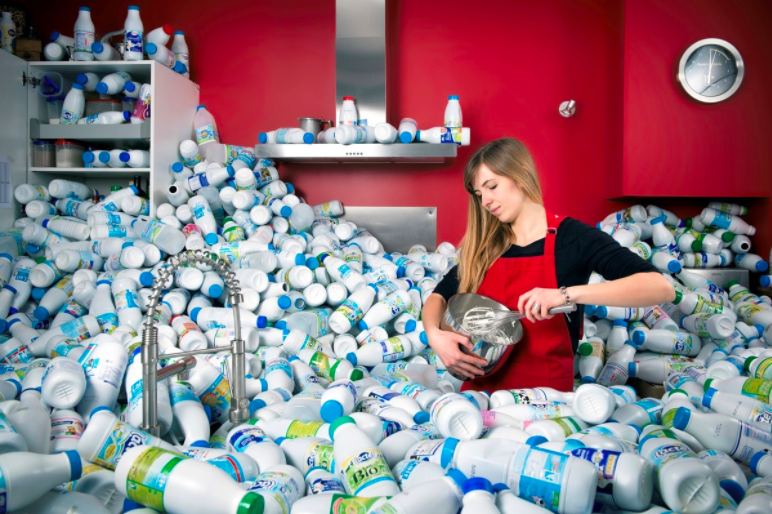 Basically, Antoine Repessé kept all the recyclable trash that he naturally accumulated throughout the year. Then he photographed it in a home to show just how much a regular human wastes! Makes you miss the good old days with glass soda bottles, right?