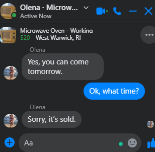 This is one of the most common conversations I have for things I am selling. I answer their question, and they never answer back. WHY? Can’t they at least say “Never mind, I’m no longer interested?” I don’t understand why someone would go out of their way to message you, only to never answer back.