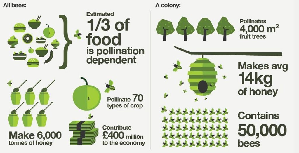Here’s ab illustration of what all honey bees, and a colony of honey bees, do for us in the UK each year. However, pollination is from all invertebrates, of which honey bees are a significant contributor.