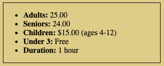 Adults $26 | Seniors $25 | Children $16 (ages 4-12)