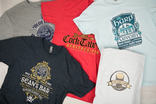 Pub Shirt Club is a membership service that sends out a new, authentic, high-quality “T-Shirt of the Month” each month from unique pubs across Ireland. We custom design for each featured pub exclusive to that month’s box!