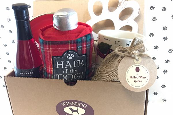 Happy HOWLidays! This seasonally-themed monthly box is bursting with exciting fun for you & your dog to enjoy together! Every WINEDOG box spoils your canine friend with a doggy-delicious drinkable treat, doggy hors d’oeuvres, & a festive dog toy. The loving human receives several additional eclectic items. The perfect gift for any wine & dog lover!