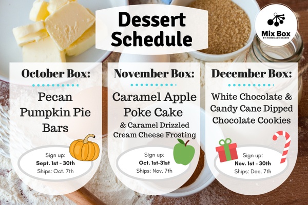 Bake delicious desserts “from scratch” in your own home with Mix Box! The easy, step by step instructions, in combination with pre-measured ingredients, makes for a perfect dessert every time you bake. Mix Box handles all of the inconvenient steps of baking & makes baking desserts easy & fun!