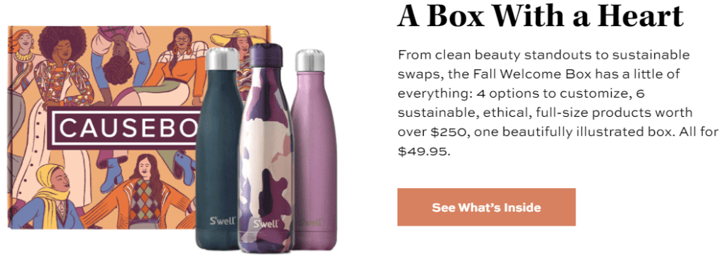 “When you begin a CAUSEBOX Membership, you’re joining a community of socially conscious women who want to make the world a better place. We believe that every product can and should be purposefully, ethically, and sustainably made, and that thoughtful consumption can create a better world.