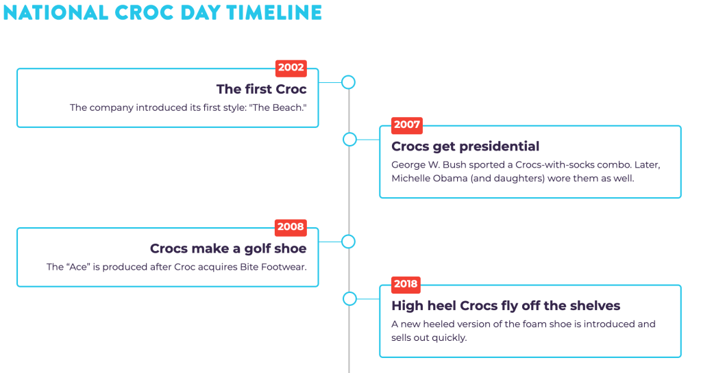 “National Croc Day isn’t just about the shoe. It’s also about keeping life simple but enjoyable. Crocs are an international phenomenon selling in over 90 countries worldwide. If you wear Crocs, you probably have them in several colors. Crocs actually come in almost every color in the rainbow and the styles are easy-peasy.”