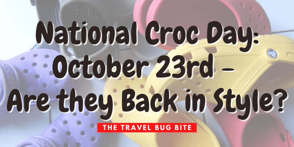 Celebrating National Croc Day is easy. Wear your favorite pair! Buy some more Crocs for your collection. Or perhaps, throw a Croc-themed party and perhaps prank a well-humored friend with shaving cream. Follow The Travel Bug Bite for more great content! Before you ask, no. I do not have Croc earrings in my store. But one day, I just might!