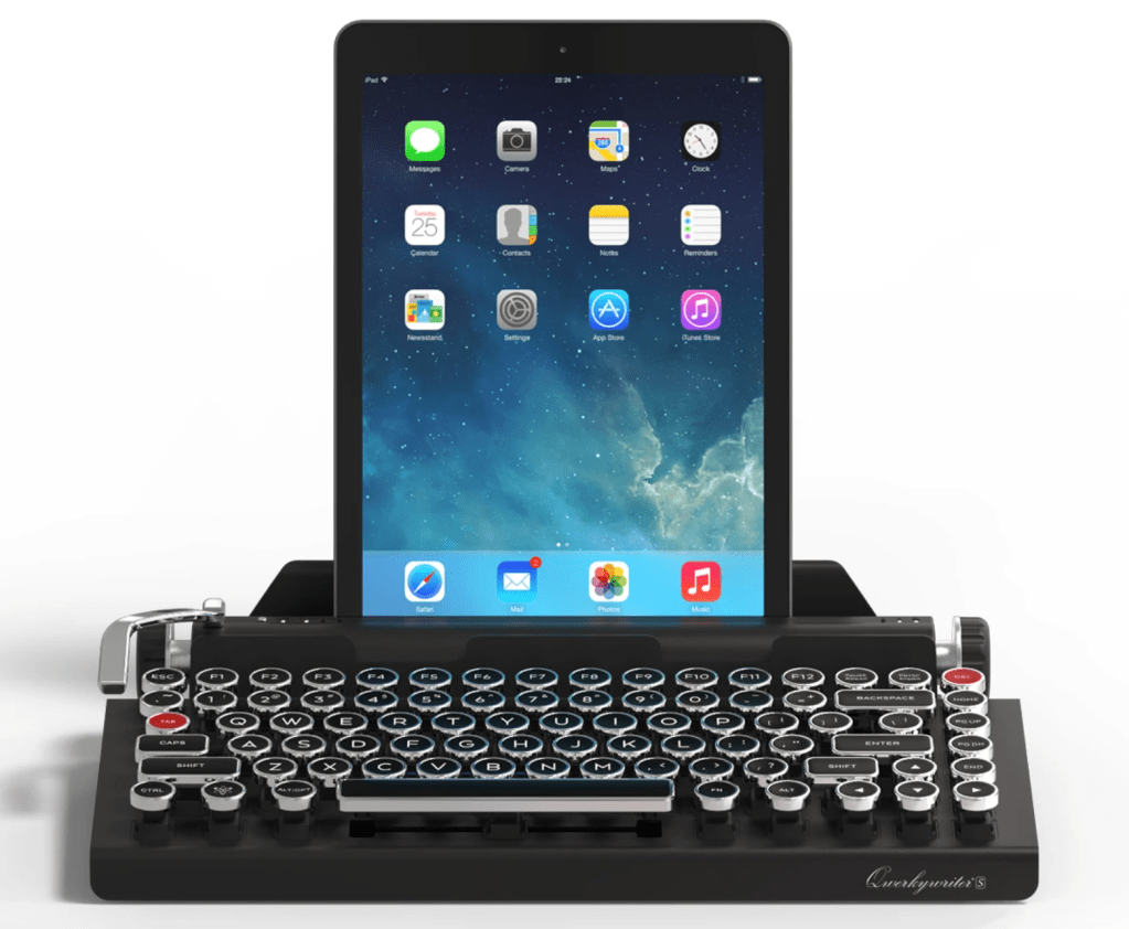 I don’t know many writers who don’t dream of typing out their thoughts on an typewriter. These romantic ideas are not always practical and I experienced this first hand. Now, I’m ready to sell my pretty but rusty typwriter that weighs as much as a bag of bricks. Thanks to Qwerkywriter, I can have the typewriter experience upgraded for the 21st century. It is shiny, lightweight and can connect to up to three devices via Bluetooth. The only downside? It comes at a hefty price.