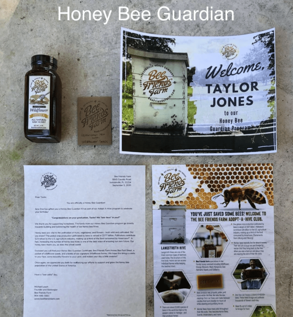 - Adoption certificate welcoming them into the Honey Bee Guardian program.