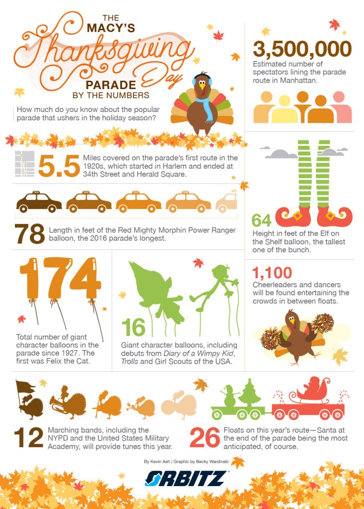 Over 50 million people watch Macy’s Thanksgiving Parade every year. Millions of people attend in person and it is has been an incredibly popular event. It is still happening this year but it will be a little different. Check out these fun statistics in the info graphic borrowed from here.