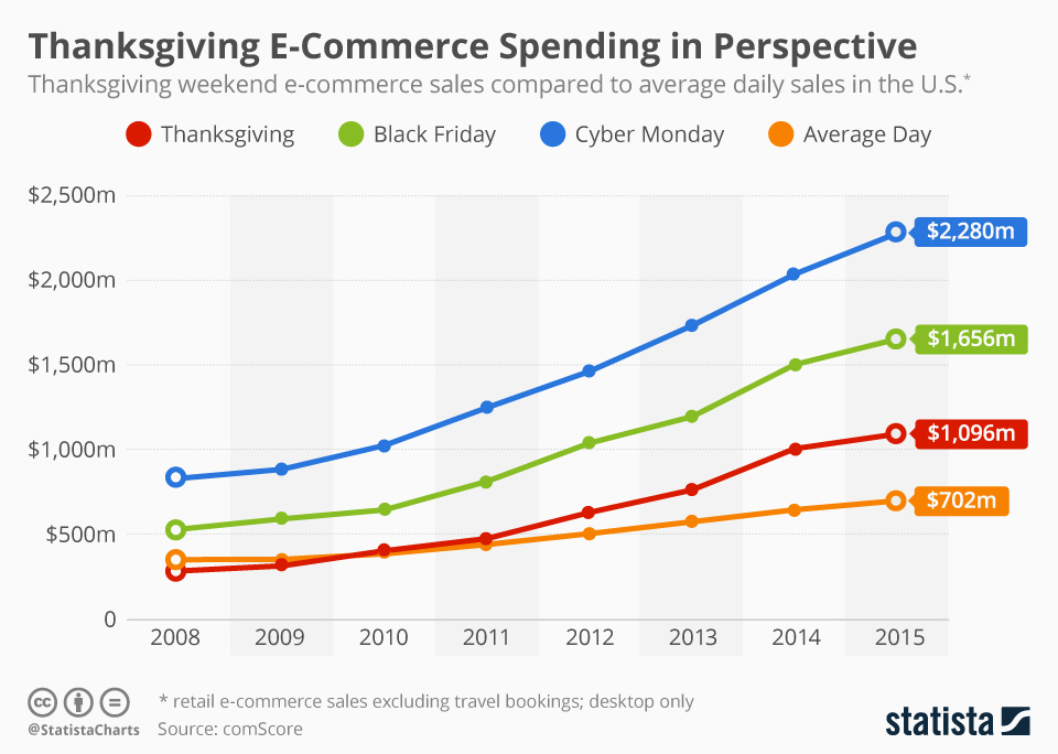 Thanksgiving is associated with various sales including Black Friday, Cyber Monday plus the expenses of hosting family meals. Statistics show that in 2019, the average amount spent per person during the five day period around Thanksgiving was $313+.