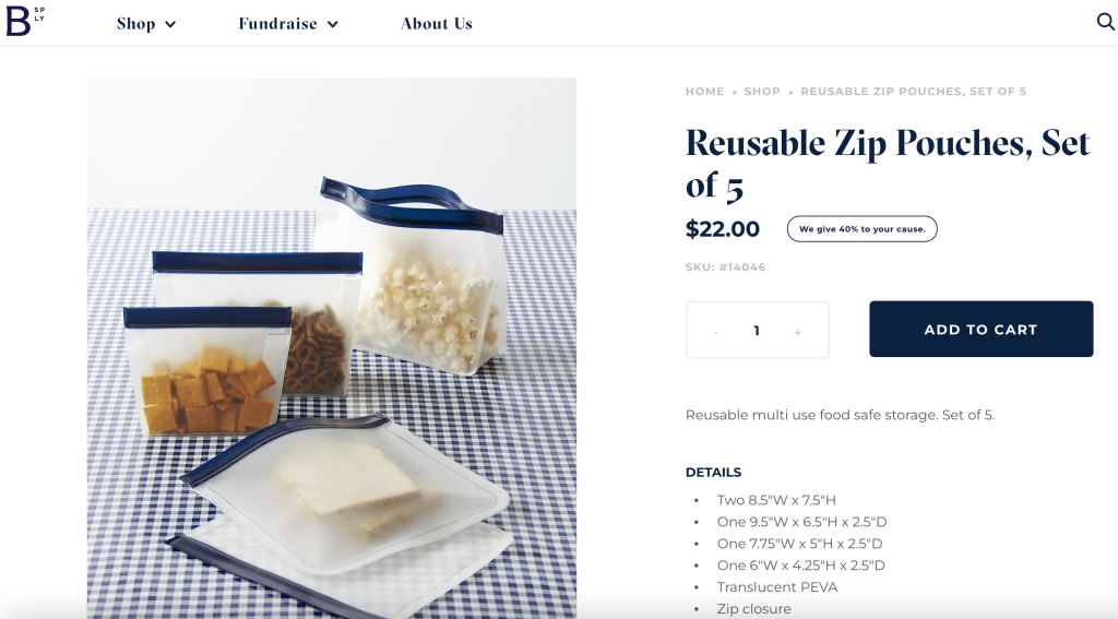 The set of five reusable zip pouches replaces more than 1,500 single use bags. While I already store food in silicone to-go containers, these are better for certain foods and they take up less space. I found them on Boon Supply easily.