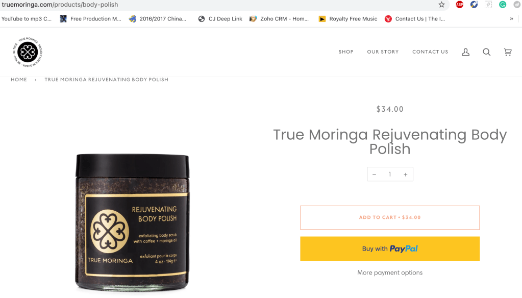 I found the Rejuvenating Body Polish on True Moringa easily. They say: