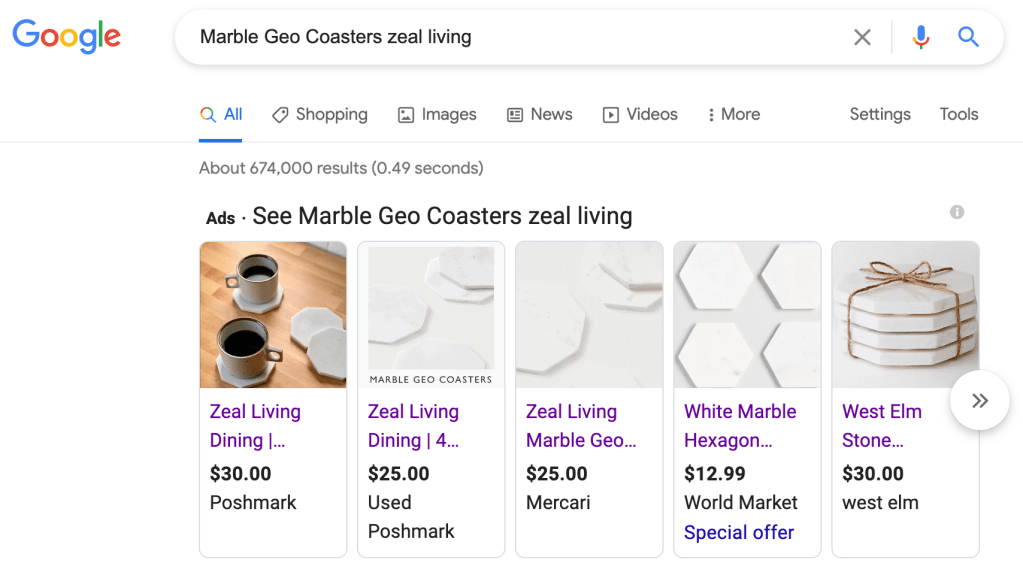 Finally, when I search for these coasters on Google, the only links to Zeal Living are people reselling them from CAUSEBOX. You can find the exact same coasters on various websites: