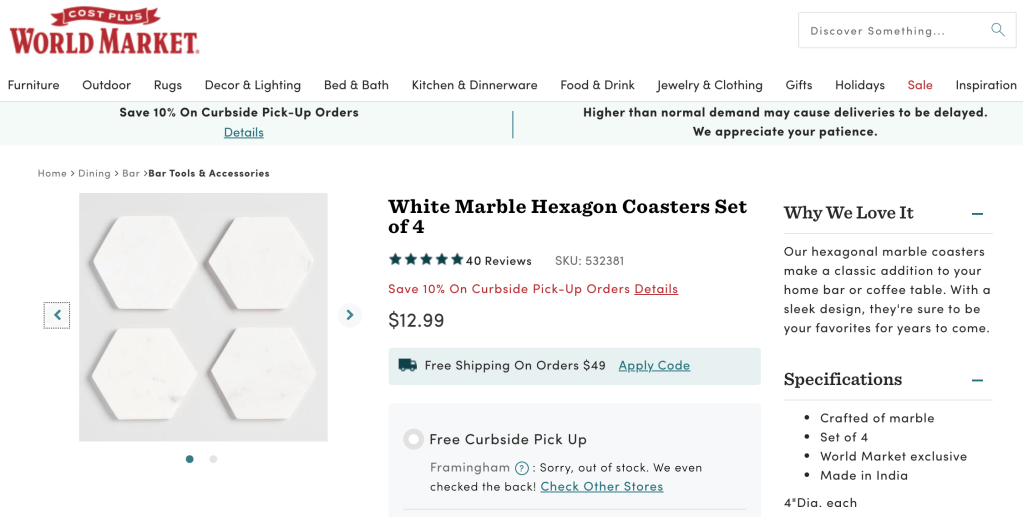 In fact, the only marble on their website is a hand-carved planter from India. And while I do believe that Zeal Living empowers artists and all that jazz, I do not believe that these marble coasters have anything to do with the company. Why? Let me explain.
