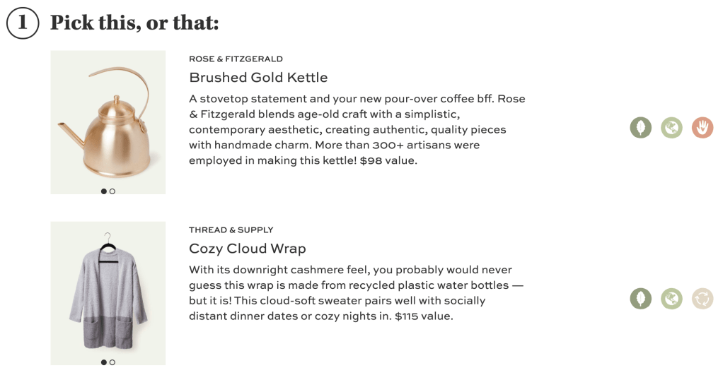 The first step of CAUSEBOX Winter Box customization was between the Brushed Gold Kettle and the Cozy Cloud Wrap. Although I was super tempted by the kettle, I knew I would use the wrap more – in fact, I am wearing it while writing this!