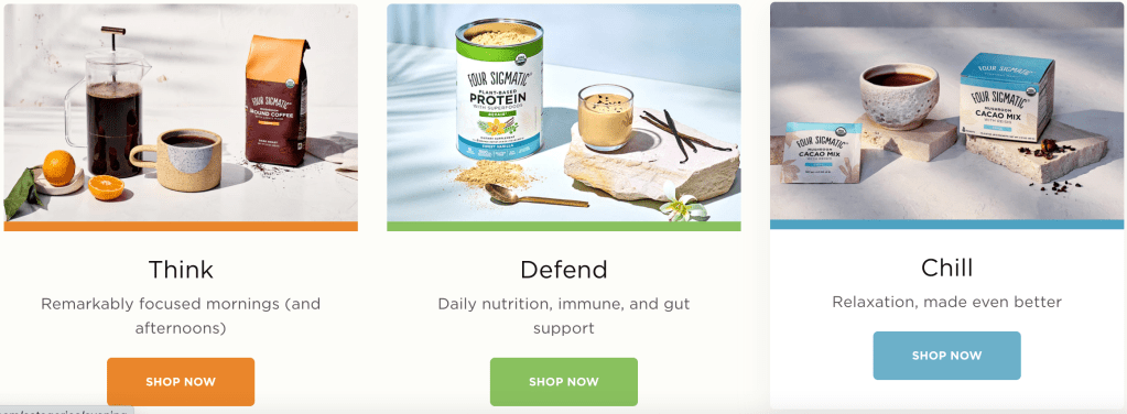 So far I have only had Four Sigmatic Mushroom Coffee, but I really want to try their other products! They have protein powder, cocoa mixes, mushroom blends, energy drinks, instant coffee packets, lattes and more! Show all products here.