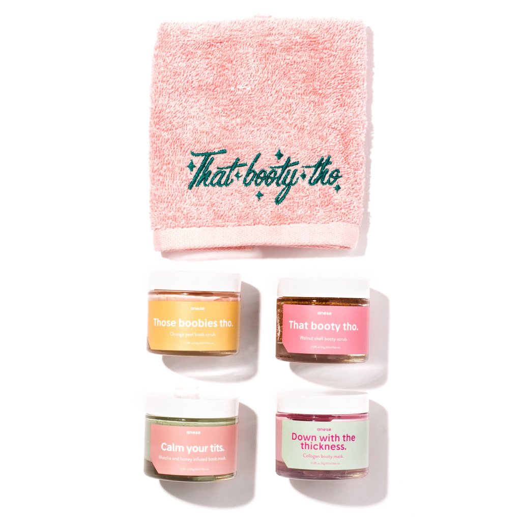 Anese is serious skin care for not so serious babes. They have a range of products with hilarious names and amazing reviews. After seeing their fun ads on Facebook I decided to bite the bullet and buy their Front to Back Set. I managed to find a coupon simply by Googling and I got the set for $115. But I’ll get to that soon… their products aim to help exfoliate, nourish and tighten your skin. Anese helps you, your boobies and your booty live their best lives!