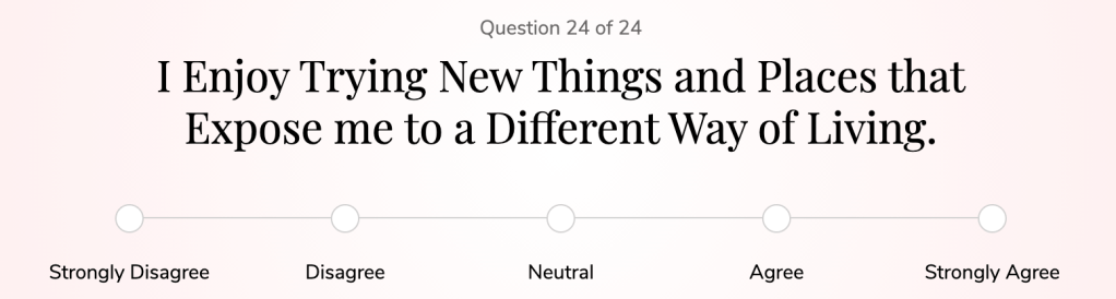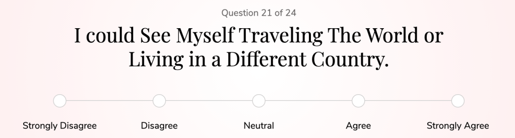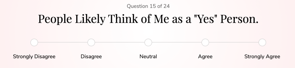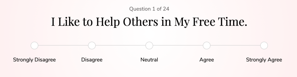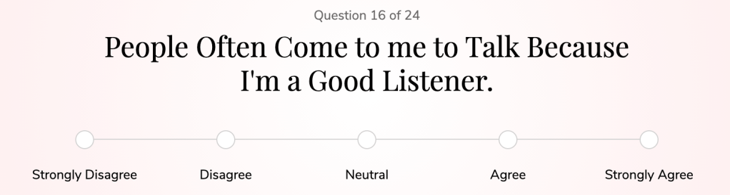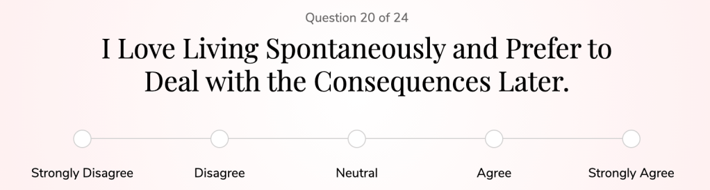 Keep in mind that there are many personality tests that are pretty random and just tell you what you want to hear. Sometimes while stealing your personal info. This one seems a little more thought out and they don’t ask to connect to your social media, so I decided to trust it.