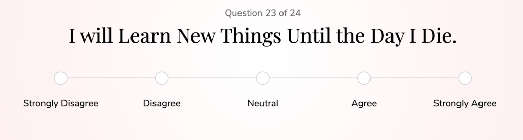 Who could possibly say anything but agree or strongly agree about this? I fully expect to be a stubborn old lady who thinks she knows it all (I’m basically there already.) But, it’s impossible to deny that there are always new things to learn. If you disagreed with this, please explain yourself in the comments, I’d be fascinated to hear your reasoning!