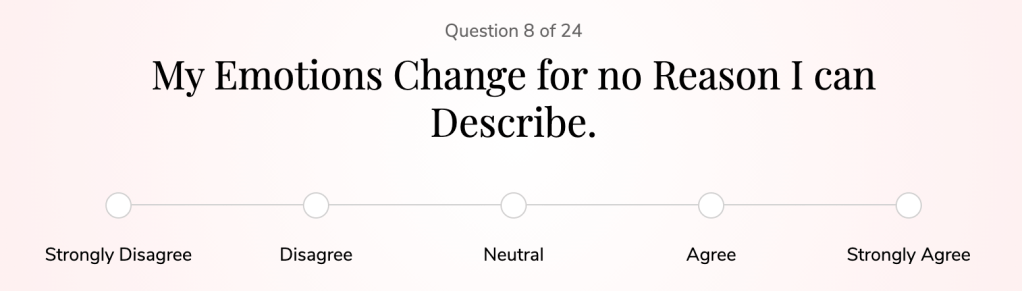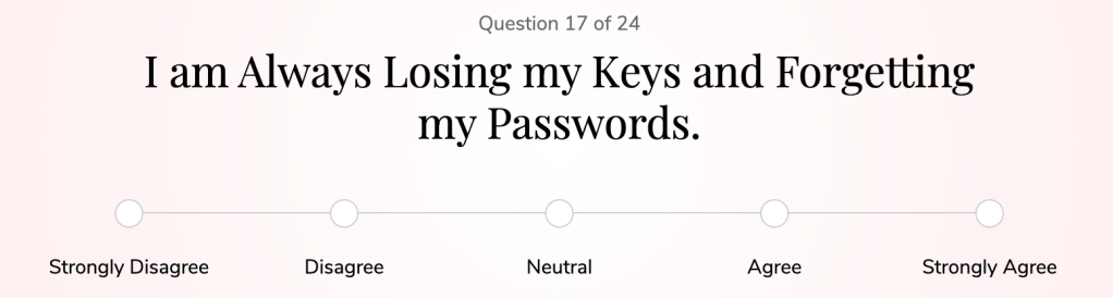 Finally a proud “strongly disagree!” Now if you asked my husband… you’d get the other end of the spectrum. Also, finally a straightforward question! Unless you’re in denial about this.