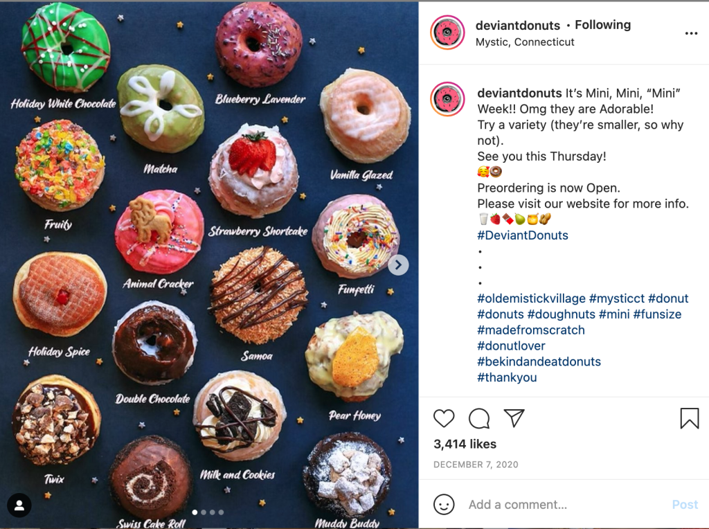 I discovered Deviant Donuts on Instagram, in a comment of a post by a vegan group. Someone had posted a photo of 10 beautiful donuts that were a special for vegan week. I decided to look up this amazing place, expecting it to be too far for me to visit. However, Deviant Donuts is in Mystic, Connecticut, just an hour drive from my home in Rhode Island! And yes… driving an hour for these donuts is worth it.