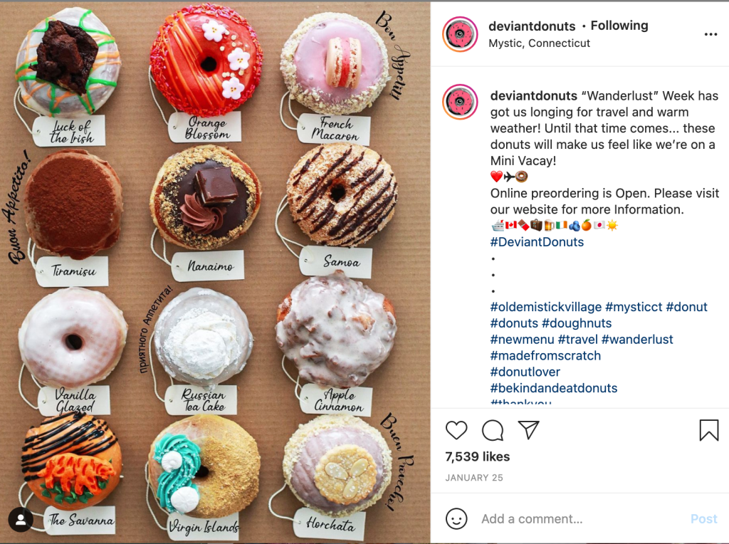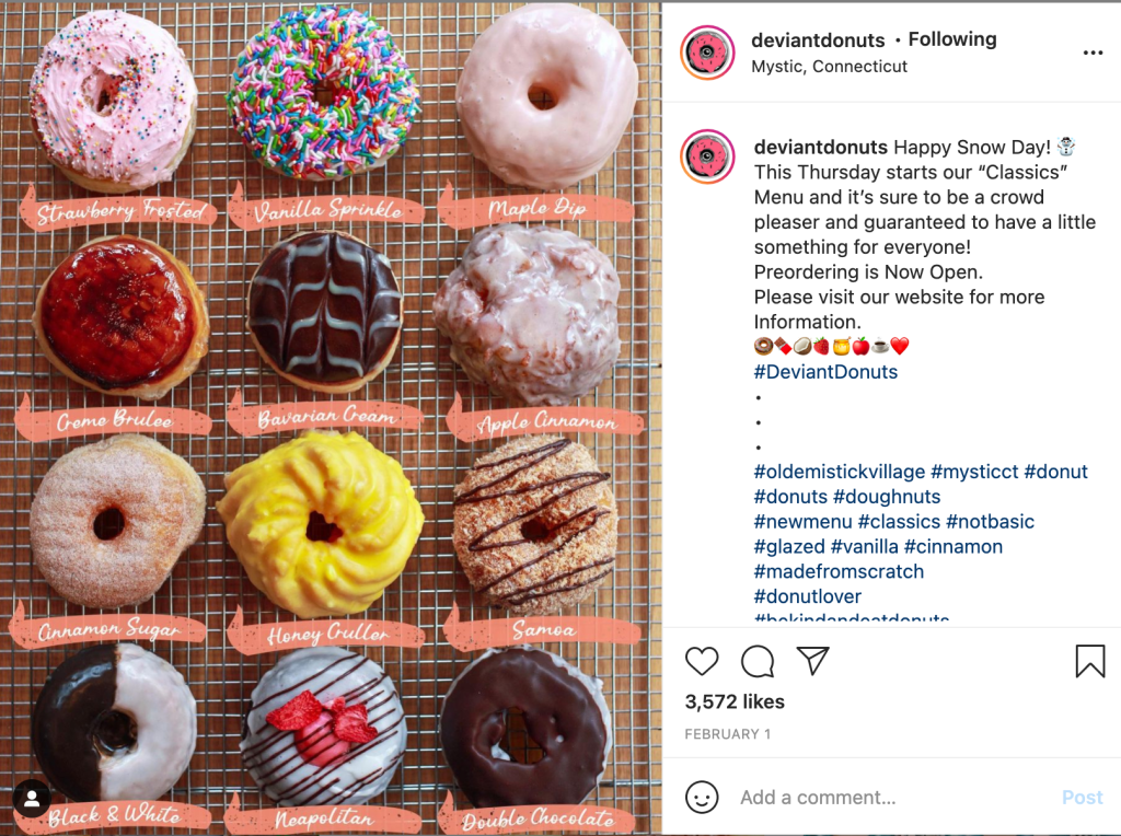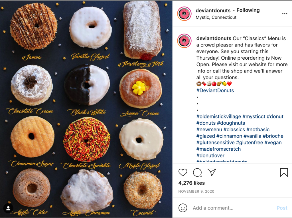 Deviant Craft Coffee & Donuts is a small-batch gourmet donut and craft coffee shop located in the Olde Mistick Village in Mystic, CT. They were established late fall 2017 as a pop-up shop in their sister shop Vault Coffee. Deviant Donuts is small but have their ear against the pulse of the latest trends and interests, making sure to take all suggestions we receive and implement them into future projects.