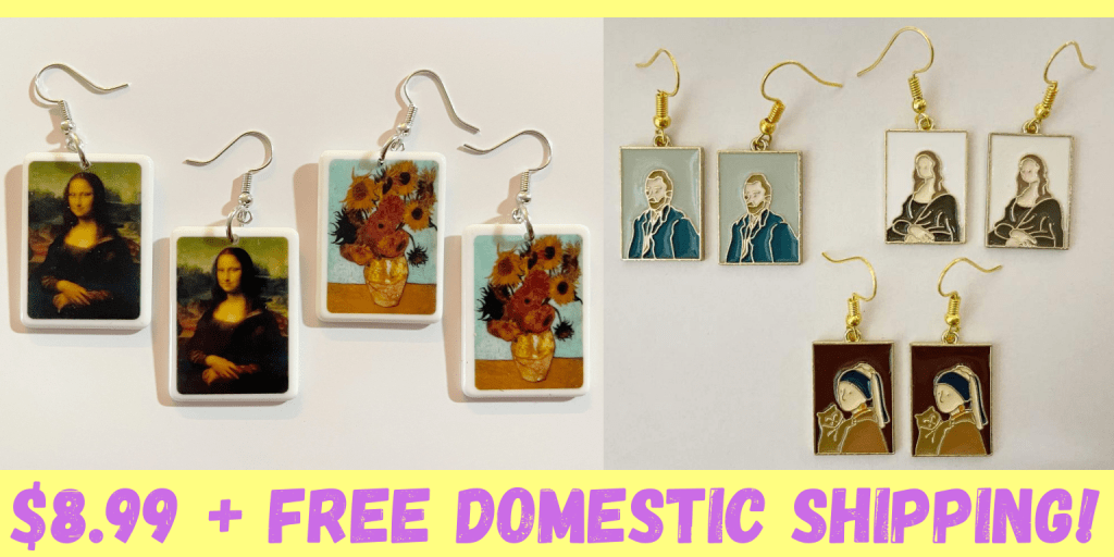 I am honestly still a little confused about all these different exhibits, and at this point, I want to go to all of them to see what the differences are. Can you ever get enough of Van Gogh? I don’t think so. Don’t forget to check out these $8.99 (plus free shipping) Van Gogh earrings by Oddity Cart. You can also buy them on Etsy. Oddity Cart has an earring for every occasion!